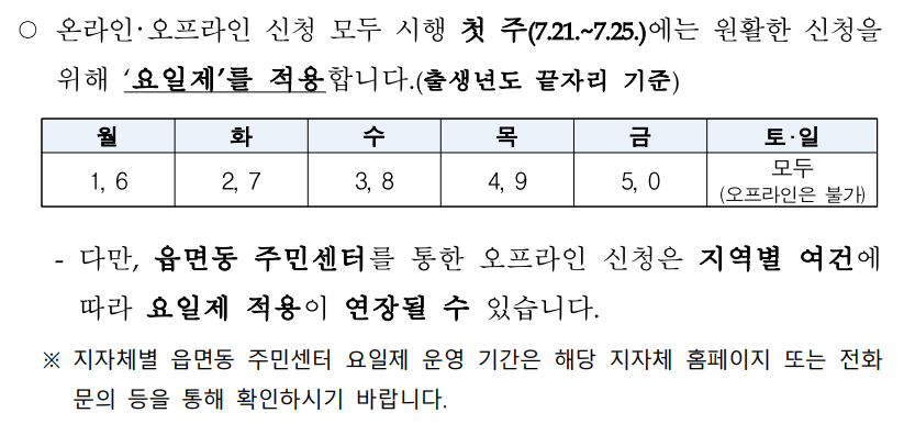 민생회복 소비쿠폰 형태로 지급되며 온, 오프라인 모두 신청 가능합니다.