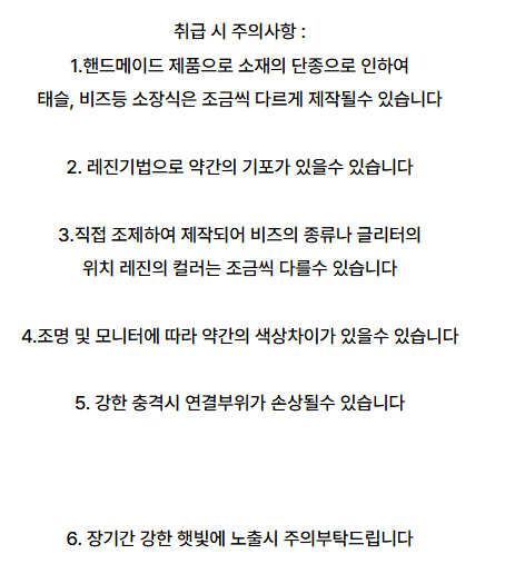 | 취급 주의사항 | 핸드메이드 특성상 차이 가능, 충격/햇빛 주의 |