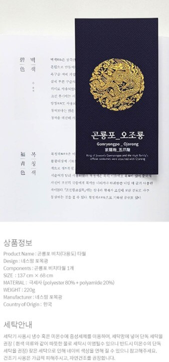 | 제품명 | 곤룡포 비치(다용도) 타월 |