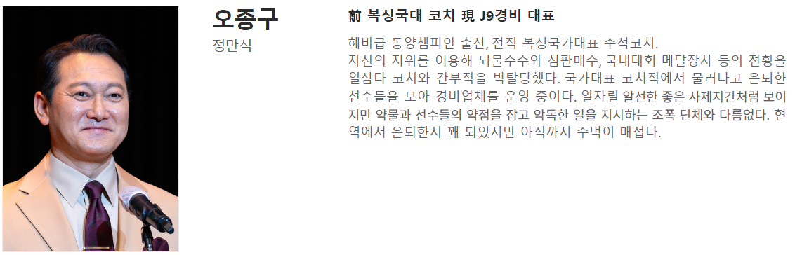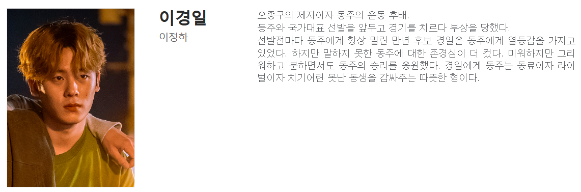 그러나 도핑 루머로 인해 선수 생활을 중단하게 되고, 11년 후 특채로 경찰이 됩니다. 선수 시절 얻은 펀치드렁크와 지나친 정의감 때문에 문제아 취급을 받지만, 그의 내면에는 뜨거운 진정성과 정이 숨어 있습니다.