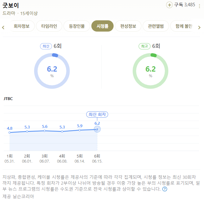 굿보이는 현재 6회까지 진행된 상황에서 시청률 6.2%를