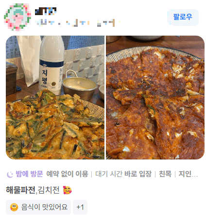 특히 해물파전은 이곳의 인기 메뉴 중 하나입니다.