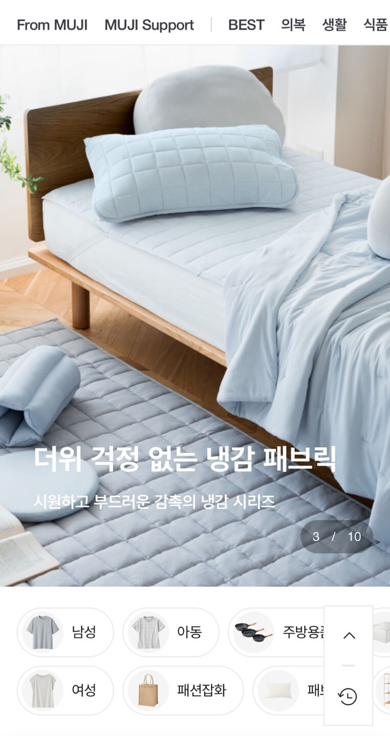 무지위크 기간이나 개별 가격 인하 기회를 잘 활용하여, 지금 바로 무인양품 냉감 침구로 시원한 여름밤을 준비해 보세요!