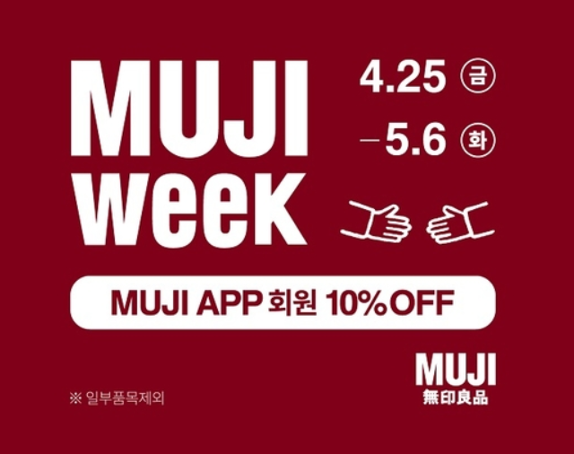 무지위크는 무인양품이 1년에 두 번(주로 봄/여름, 가을/겨울) 진행하는 전 품목 10% 할인 행사입니다.