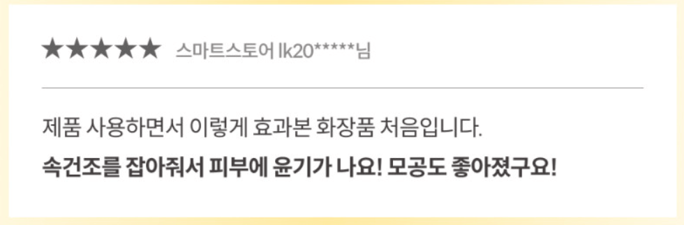 - 피부 개선 기대: 꾸준히 사용 시 피부톤이 밝아지고, 잔주름이 옅어지며, 피부 탄력이 개선되는 등 전반적인 피부 컨디션 향상을 경험했다는 사용 후기가 있습니다. 특히 칙칙한 피부나 탄력 저하에 대한 고민을 가진 사용자들에게 긍정적인 평가가 나타납니다.