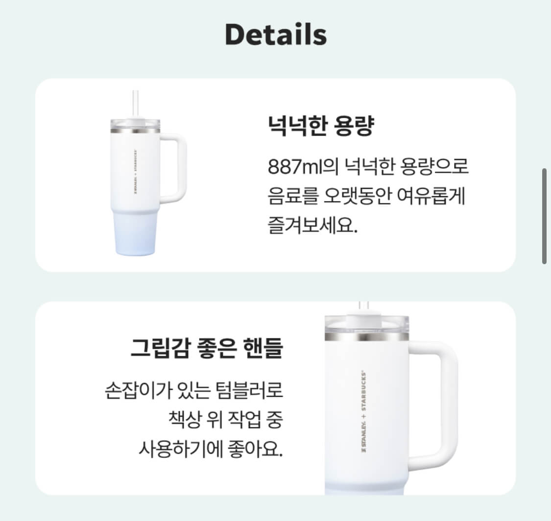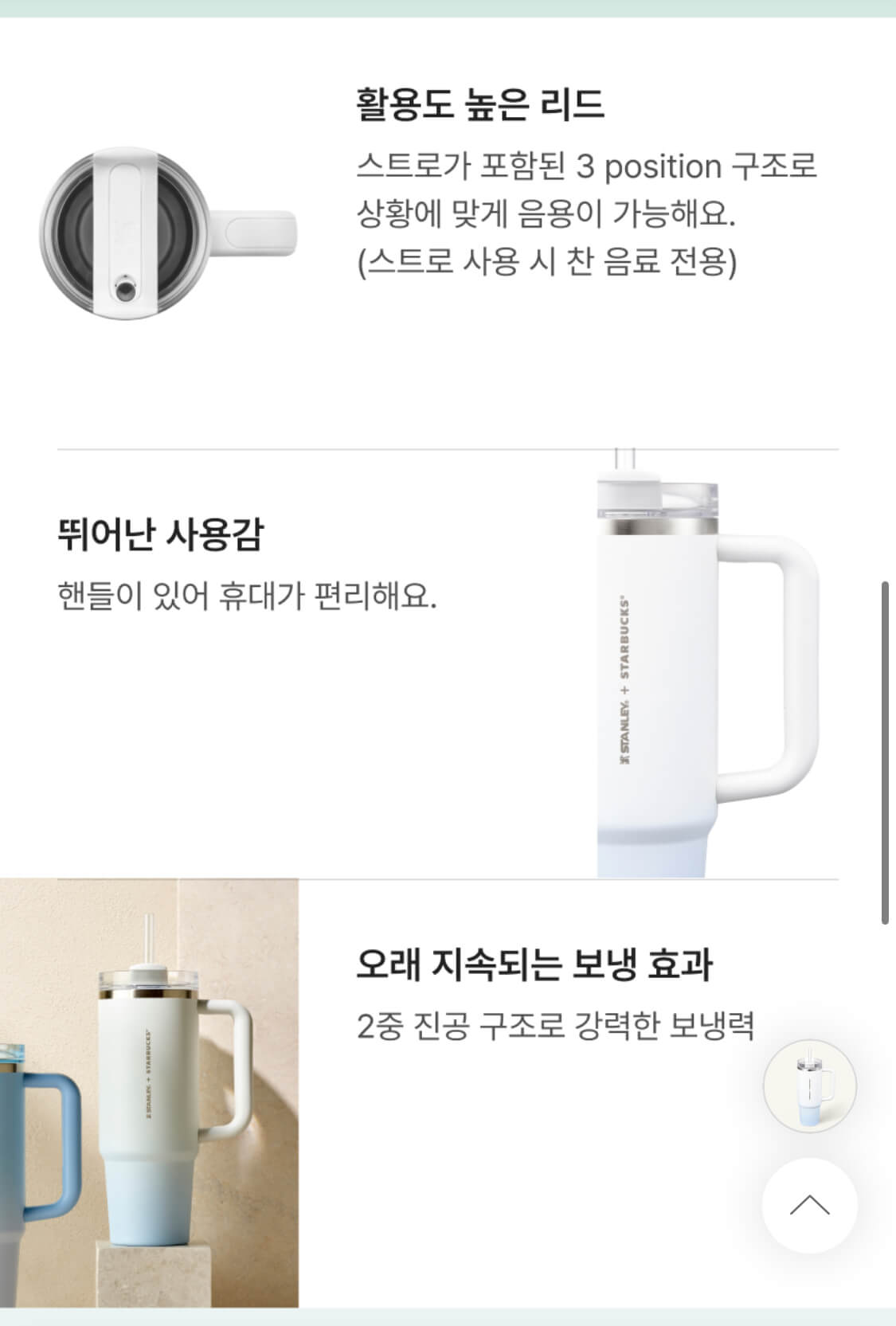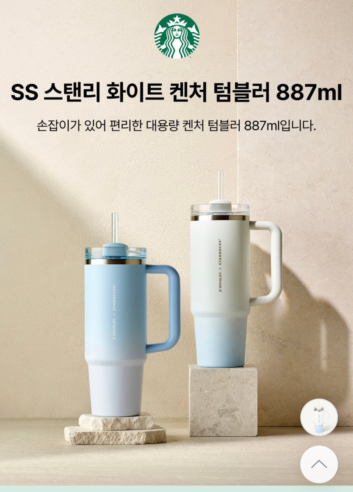 | SS 스탠리 화이트 켄처 | 887ml | 60,000원 | 시즌 한정, 화이트 그러데이션 |