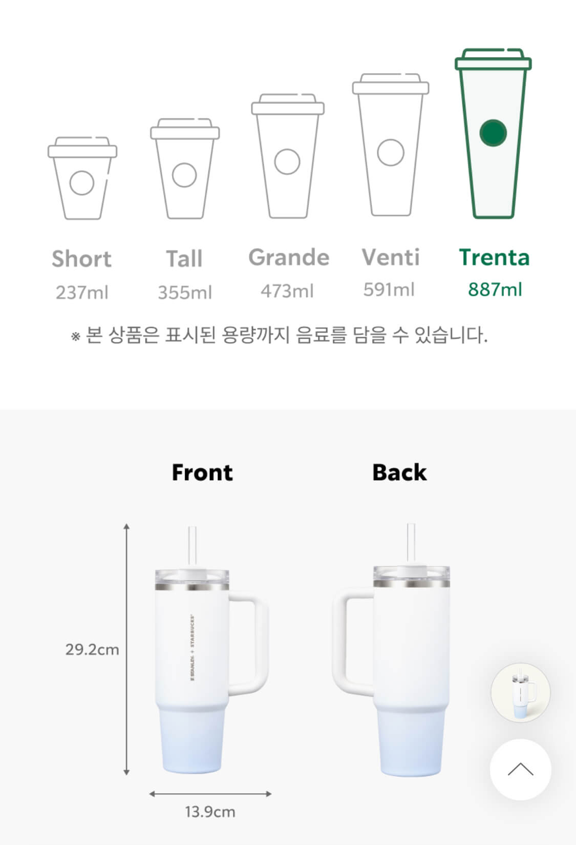 앞서 소개한 제품들보다 작은 591ml 사이즈로, 딱 벤티 사이즈로