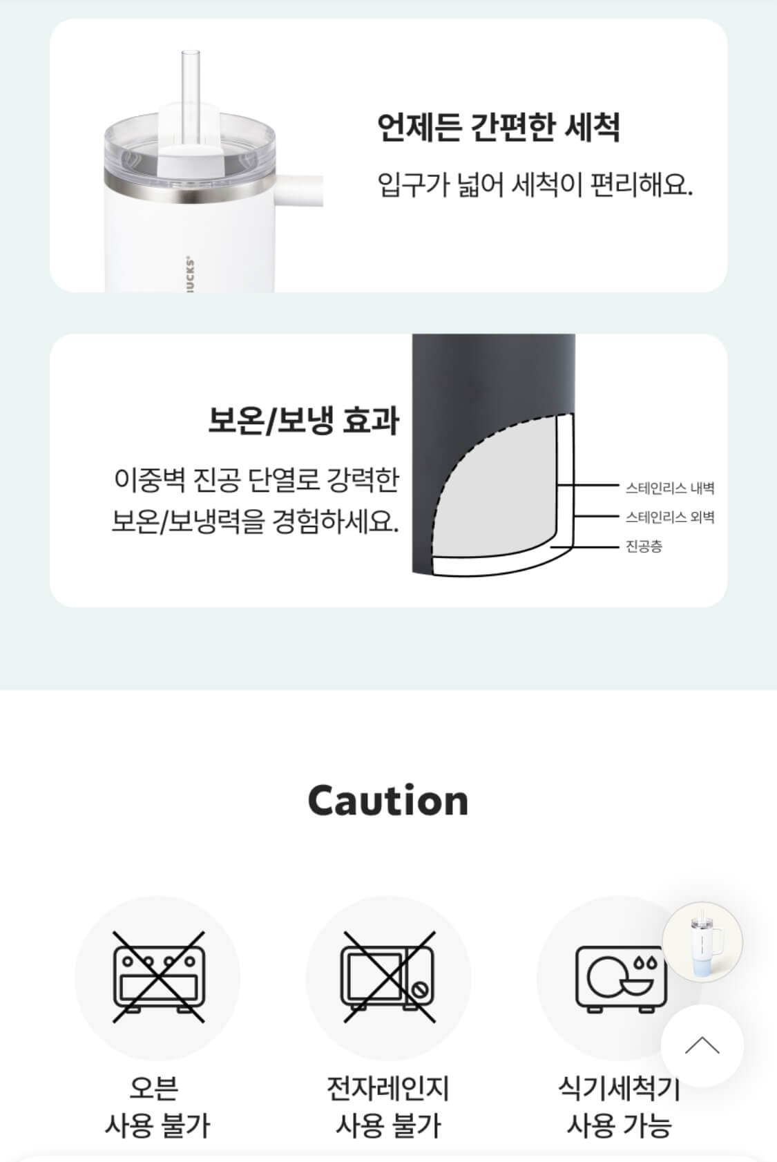 스테인리스 스틸 소재로 보온/보냉 기능이 뛰어나고 차량용 컵홀더에도 잘 맞아 실용적입니다.