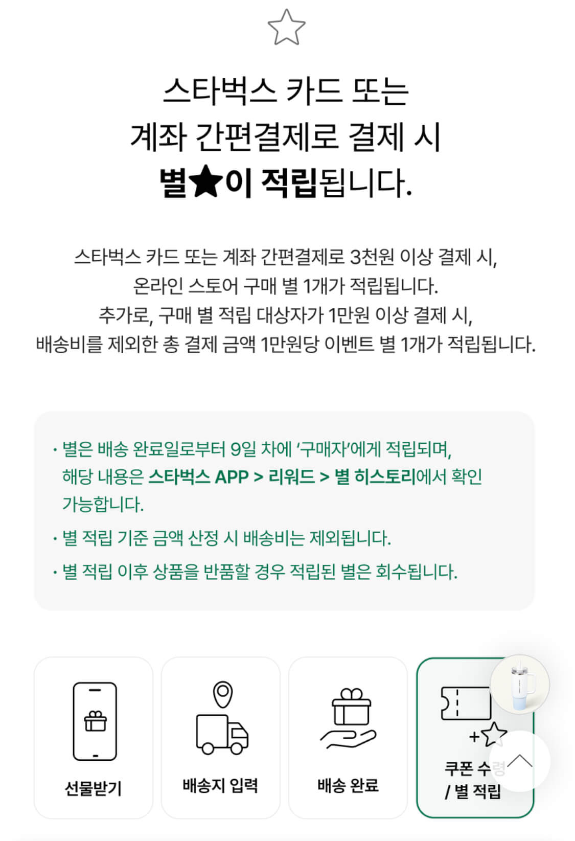 스타벅스 카드 또는 계좌 간편결제로 별 적립 혜택도 잘 챙겨보시고