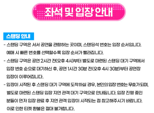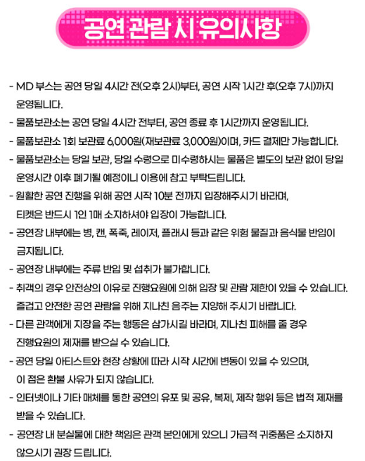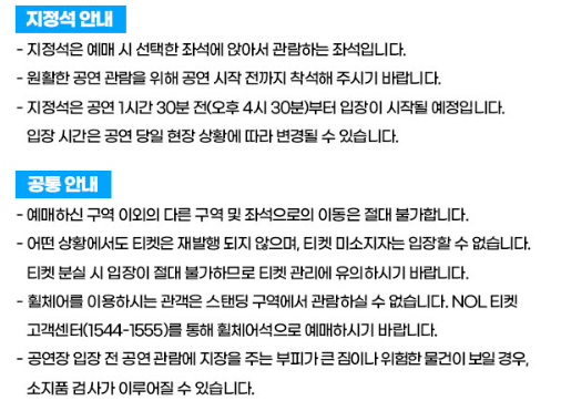 - 티켓 분실/파손/도난 등 어떠한 경우에도 재발권이 불가하며, 티켓 미소지 시에는 입장이 불가하오니 티켓을 잘 보관해 주세요.