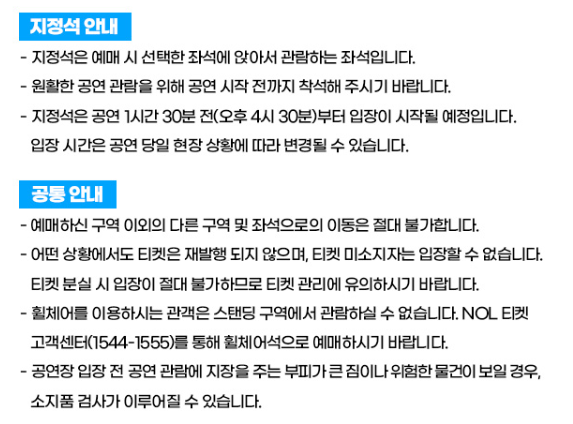 ※ 휠체어석 예매는 6월 9일(월) 오전 9시부터 NOL 티켓 고객센터(1544-1555)를 통한 전화 예매로만 가능합니다.