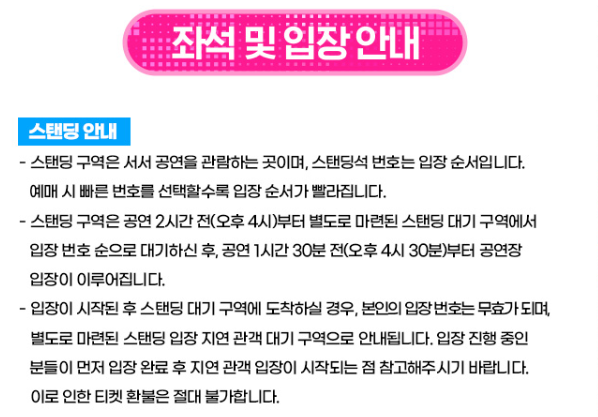 - 티켓 분실/파손/도난 등 어떠한 경우에도 재발권이 불가하며, 티켓 미소지 시에는 입장이 불가하오니 티켓 보관에 유의해 주시기 바랍니다.