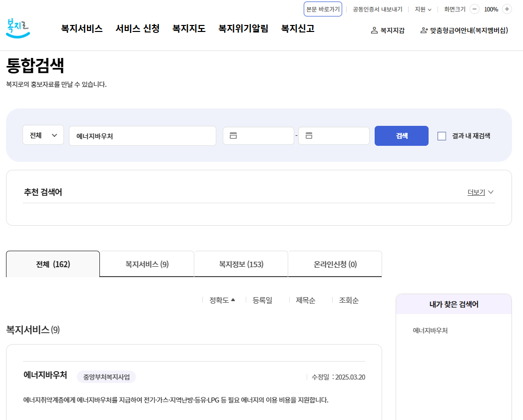 2. 검색 결과, 복지서비스 중, 최상단 에너지바우처 클릭