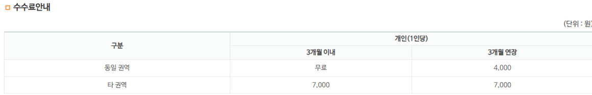 같은 권역은 처음 3개월까지는 무료지만, 다른 권역으로 이사하는 경우 처음부터 유료입니다.