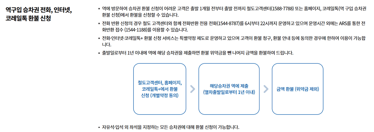 단체 승차권, 역 구입 승차권 등은 일반과 다른 환불 규정이 적용되니, 구매 시 약관을 확인하세요.