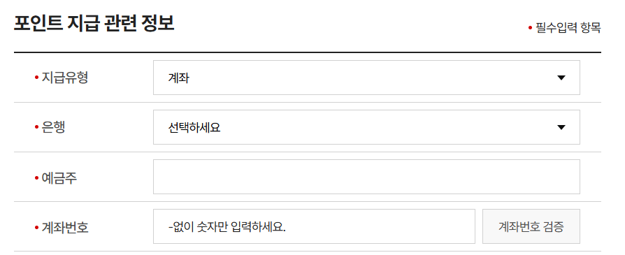 - 지급 방식: 월별 적립된 포인트는 다음 달에 본인이 신청한 계좌로 입금됩니다. (예: 7월 적립 포인트는 8월에 지급)
