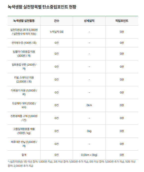 | 다회용기 이용 | 카페 등에서 개인 컵/다회용기 사용 | 10,000원 |