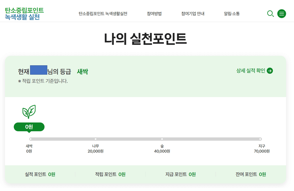 탄소중립 실천포인트는 별도의 공식 앱이 아닌 홈페이지를 통해 통합 관리됩니다.