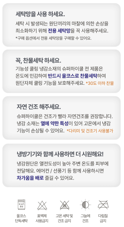 호무로 냉감이불 세탁 시 주의 사항