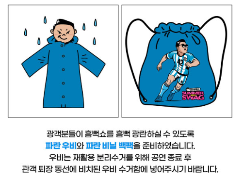 - 현장 제공 품목: 공연장 입장 시 방수가방, 우비 1개 제공