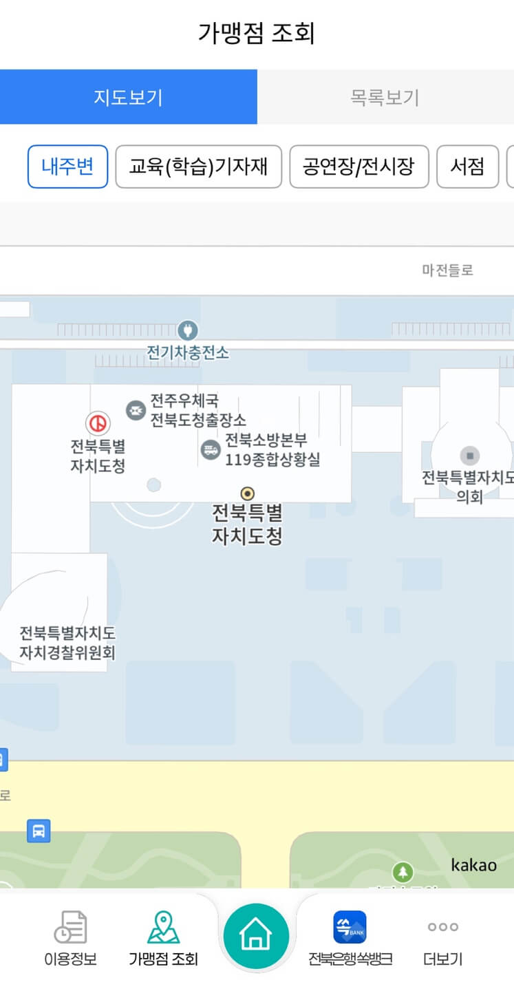 '전북에듀페이 앱'에서 가맹점 목록, 사용 내역, 잔액을 실시간 조회 가능합니다.