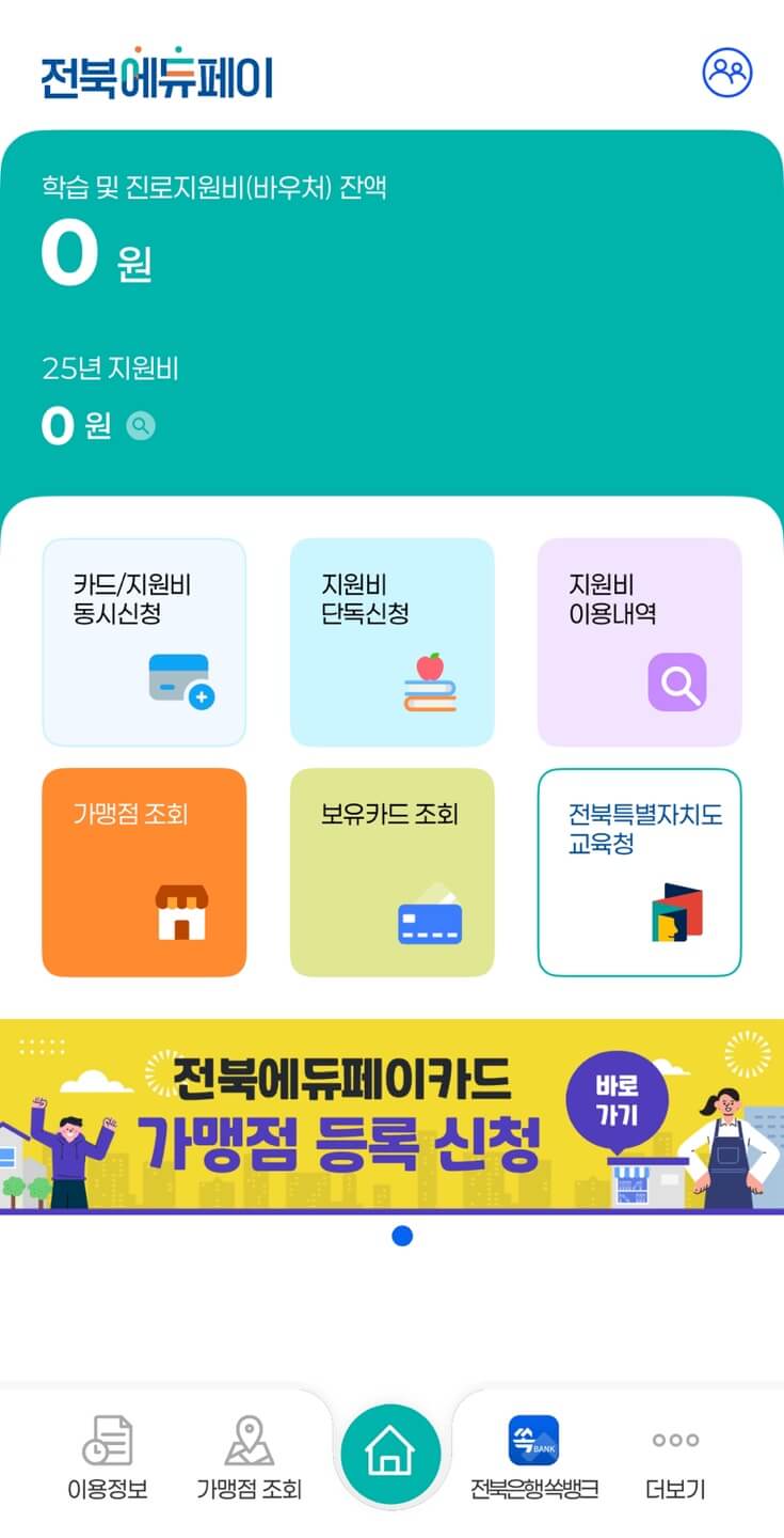 - 신청 방법: 전북에듀페이 앱 또는 신청 시스템 온라인 신청 (카드 발급 후 바우처 신청)